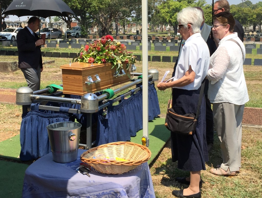 After a lifetime of good byes we now come to the final farewell. As your biological family we stand with your religious family to send you home.