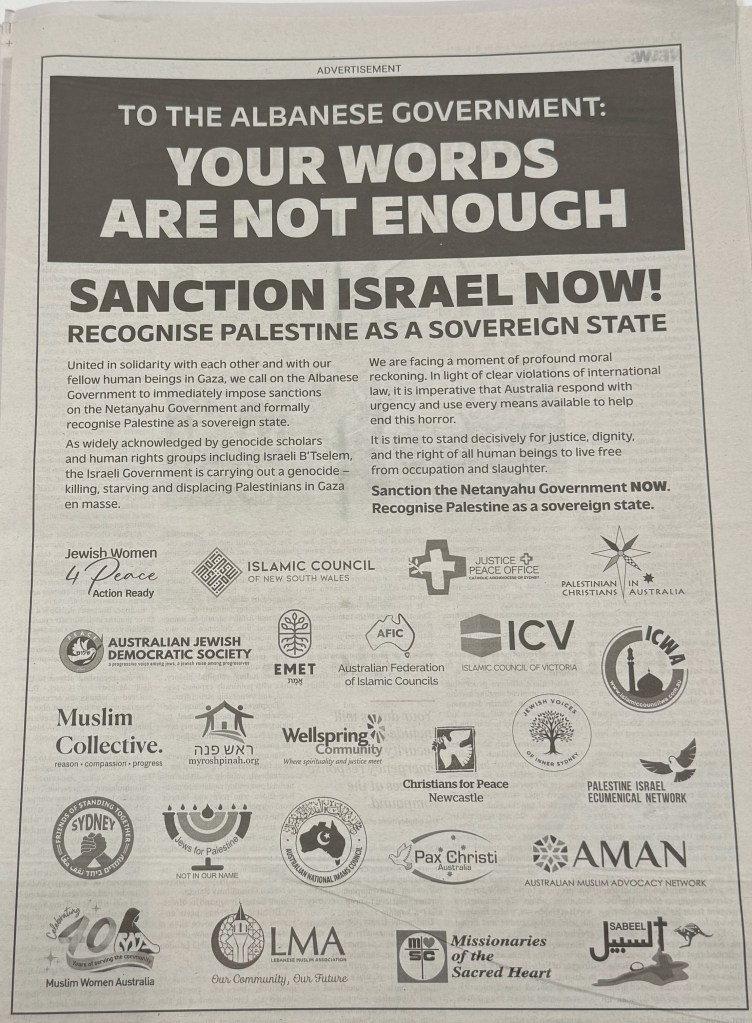 I stand with justice seeking colleagues in the Justice and Peace Office of the Catholic Archdiocese of Sydney, Missionaries of the Sacred Heart – Australia, Pax Christi Australia and share the collaborative solidarity of mulitfaith representatives who have signed this statement.
